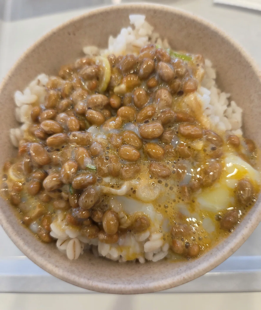 納豆ご飯、むっちゃうまい。栄養もとれる。